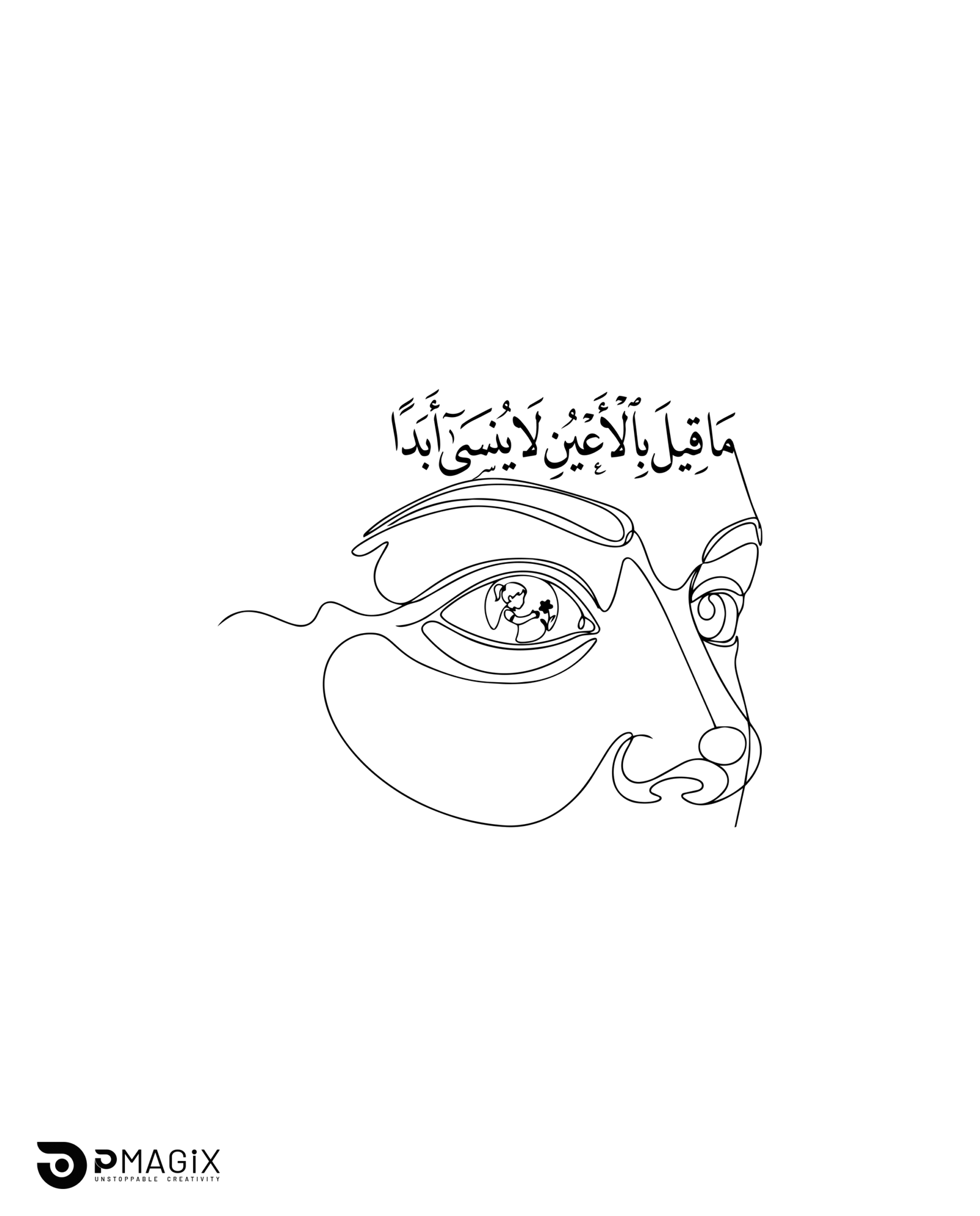 The Design show an Arabic calligraphy with minimal line art, inspired by the phrase: “What is said through the eyes is never forgotten.”